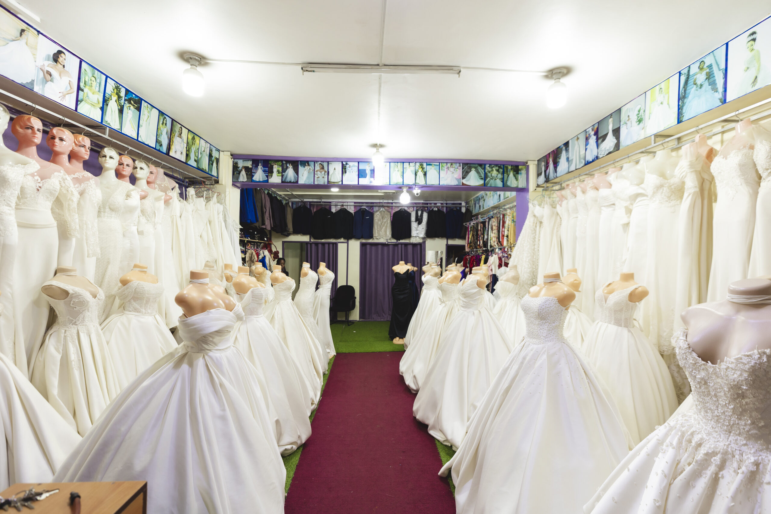 A variety of retail shops offering wedding décor, crafts, jewelry, tailoring, salon services, and more